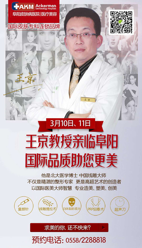 好(hǎo)消息!3月(yuè)10日(rì)—11日(rì),北(běi)京大(dà)學留美(měi)醫(yī)學博士,30餘年(nián)醫∑(yī)美(měi)微(wēi)整形經驗,國(guó)內(nèi)線雕大(dà)師(shī)、阜陽皮膚病醫(yī✘)院特聘業(yè)務院長(cháng),王京教授莅臨阜城(chéng)——助力女(nǚ)神節,讓您完美(měγi)逆襲!